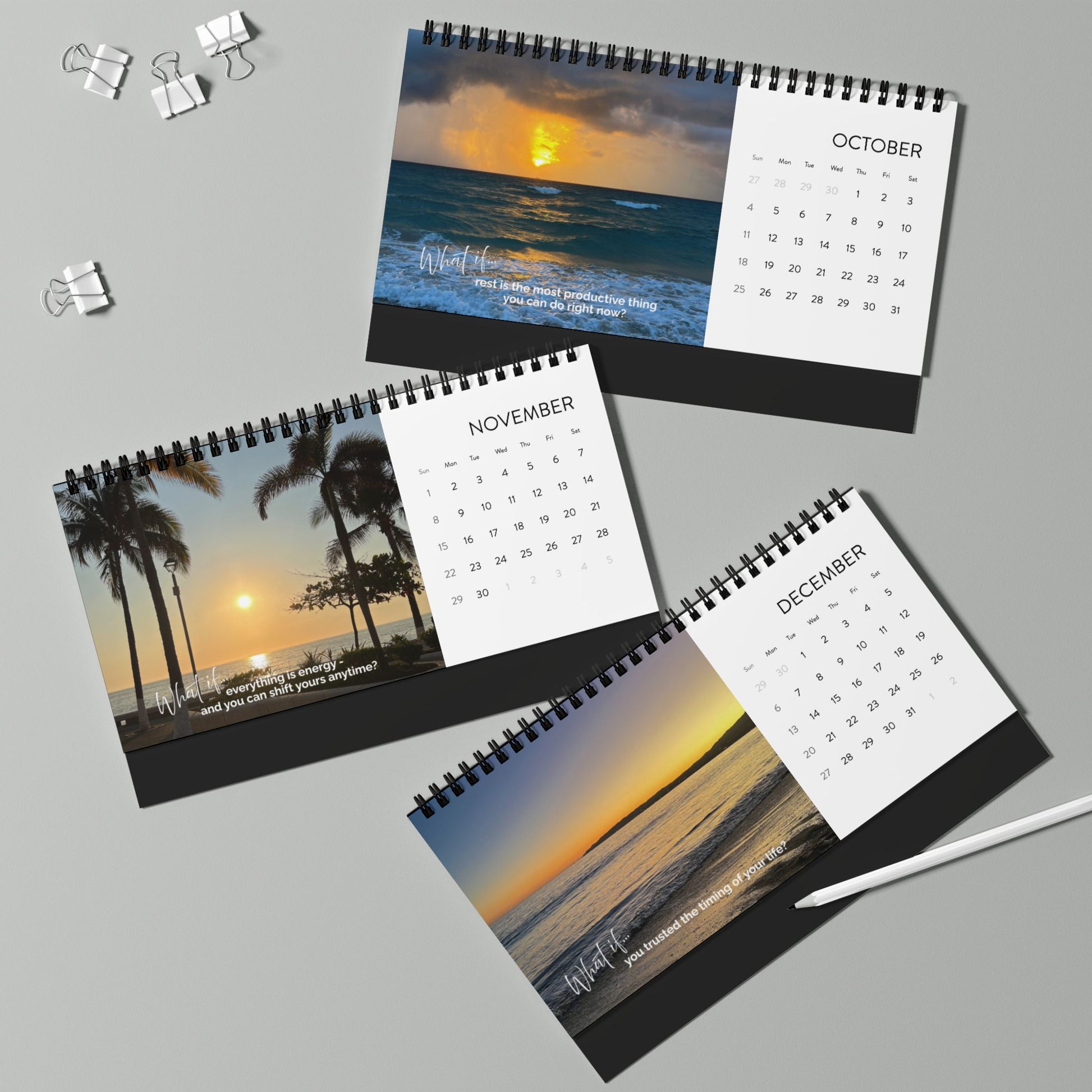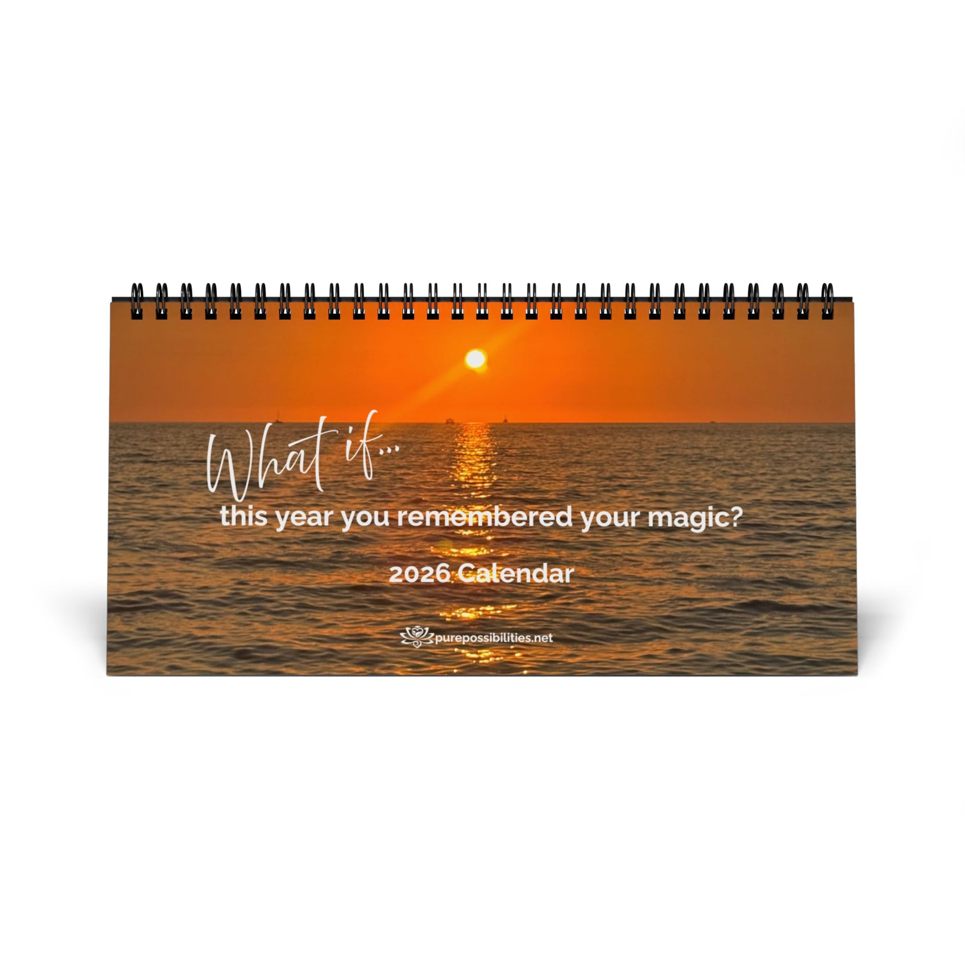 Bring calm, inspiration, and possibility to your workspace with the 2026 “What If” Desktop Calendar - a mindful collection of ocean horizons, glowing sunsets, peaceful landscapes, and soul-stirring reflections.